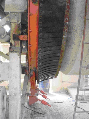 e)這種密封形式可以適應回轉窯筒體徑向跳動、軸向串動等問題,在筒體變形、偏擺和串動的情況下,仍然能夠保證良好的密封,有利于改善窯漏風,熱工制度很難穩(wěn)定、熟料升重低、結圈現(xiàn)象,臺時產(chǎn)量、熟料質量偏低等問題。